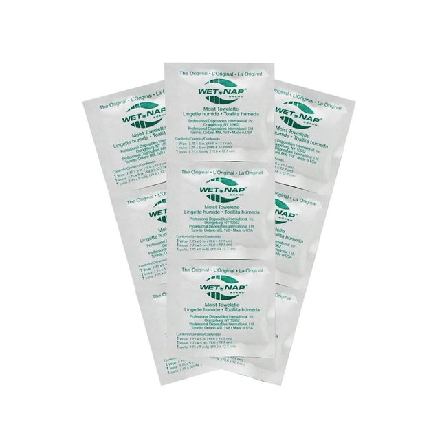 "Wet Nap" towelettes moistened with cleansing lotion.