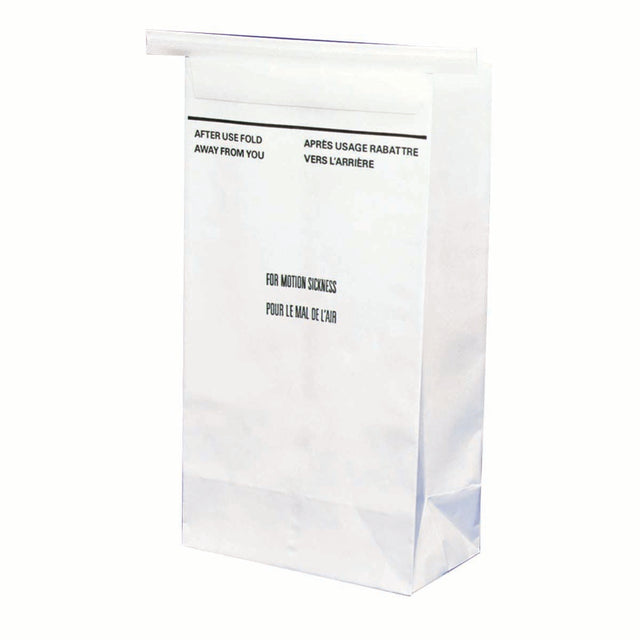 This vomit bag consists of a high density polyethylene liner with a heat-sealed bottom.